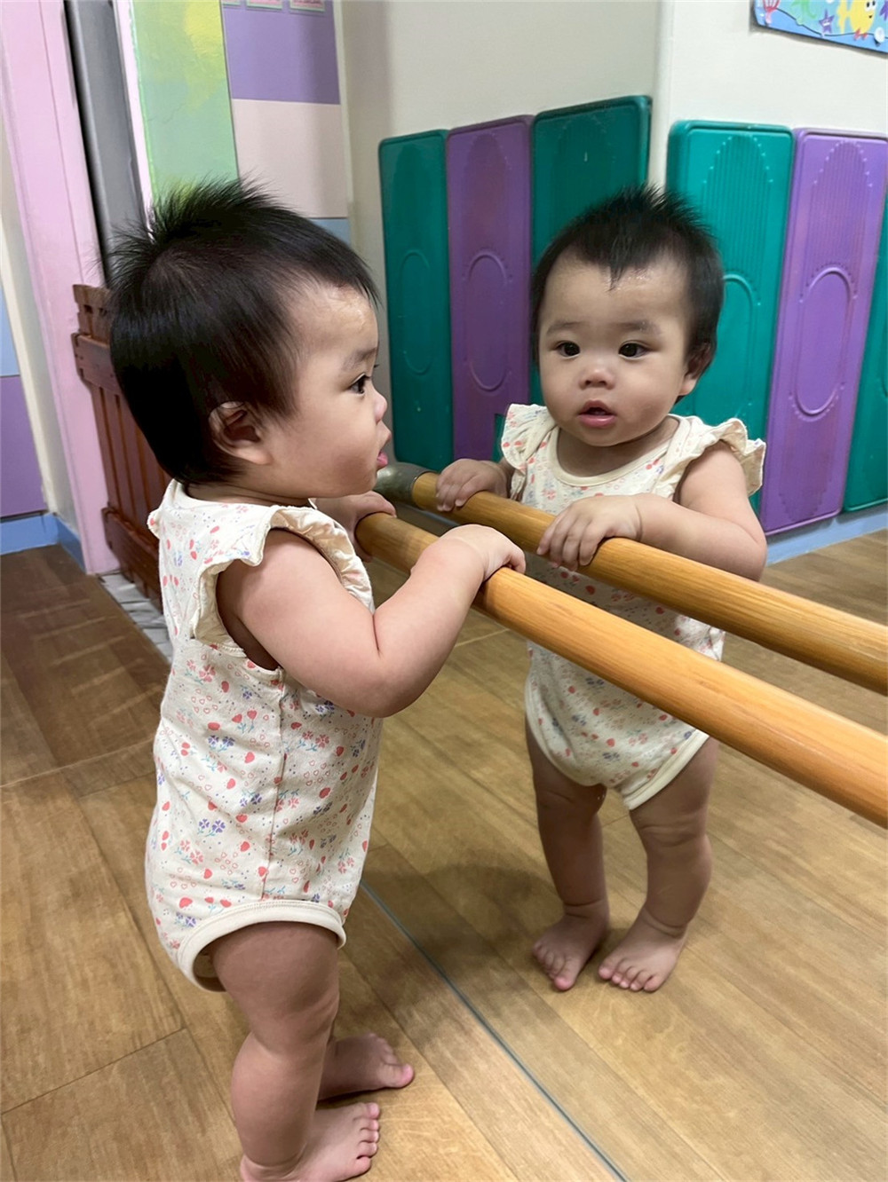 和同學們一起走在學步梯上,越走越穩!
